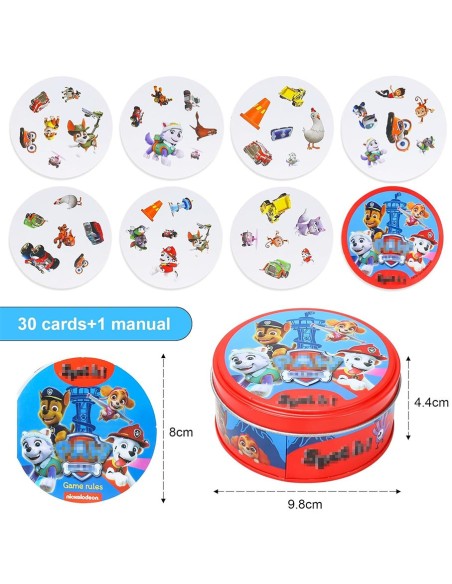 “Spot It! Paw Patrol” yra žaidimas, kuris reikalauja greito reagavimo ir simbolių atpažinimo. Šis žaidimas yra puikus būdas lavinti smegenų ir akių koordinaciją. Žaidimas padeda gerinti regėjimo žodžių atpažinimą, supratimą skaitymo metu ir plėtoja anglų kalbos žodyną