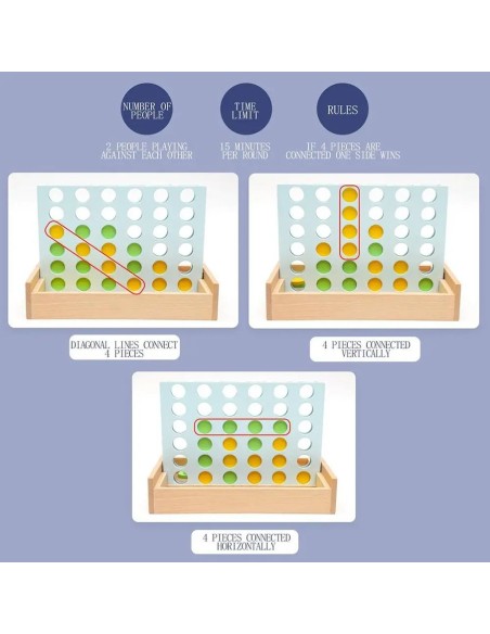 - Pagerinkite pažinimą: Kruopščiai suformuluotas siekiant pagerinti kritinio mąstymo įgūdžius ir mesti iššūkį jūsų protui. Šis "Connect 4" iš eilės yra ne tik įdomus užsiėmimas, bet ir puikus būdas lavinti kognityvinius įgūdžius, tokius kaip logika, strategija ir problemų sprendimas.