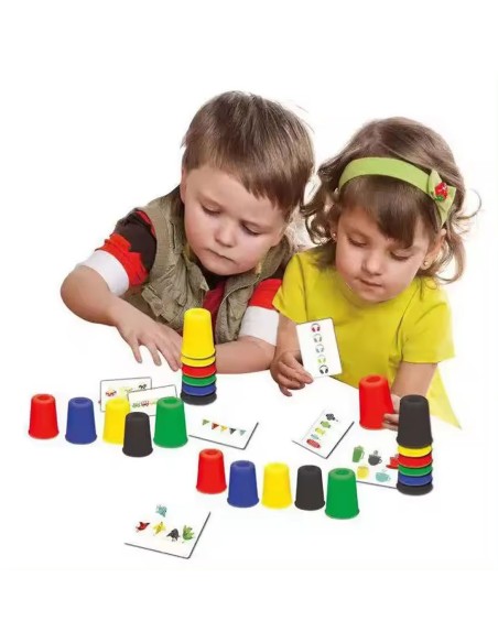 Kiekviena žaidimo kortelė turi tam tikrą paveiksliuką su spalvotais daiktais. Vieni iš jų pavaizduoti horizontaliai - kaip traukinukas. Kiti - vertikaliai, kaip puodeliai. Sustatykite savo puodelius taip, kaip pavaizduota jūsų kortelėje, viena ant kitos arba į eilę, pagal kortoje pavaizduota paveikslėli, tai padaryti reikia greičiau už kitus žaidėjus, paskambinkite varpeliu pirmasis ir gaukite sekančią kortą. Žaidėjas, surinkęs daugiausiai kortelių laimi žaidimą.