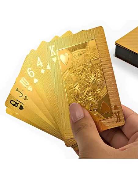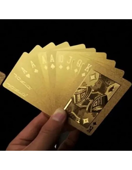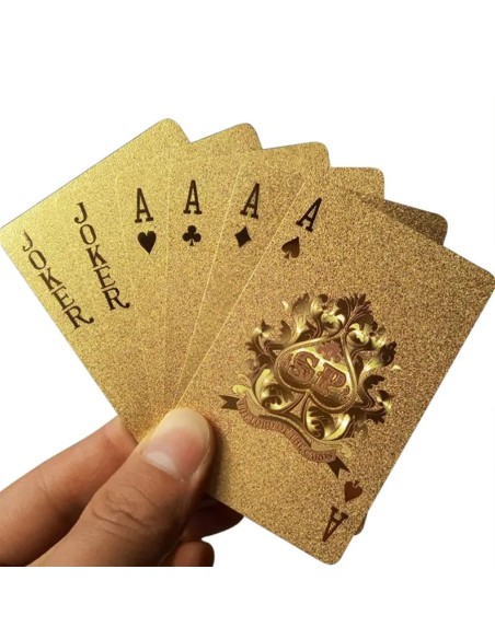 Auksinės plastikinės žaidimo kortos – stilingas pasirinkimas tiek žaidimams, tiek magiškiems triukams. Puiki dovana!