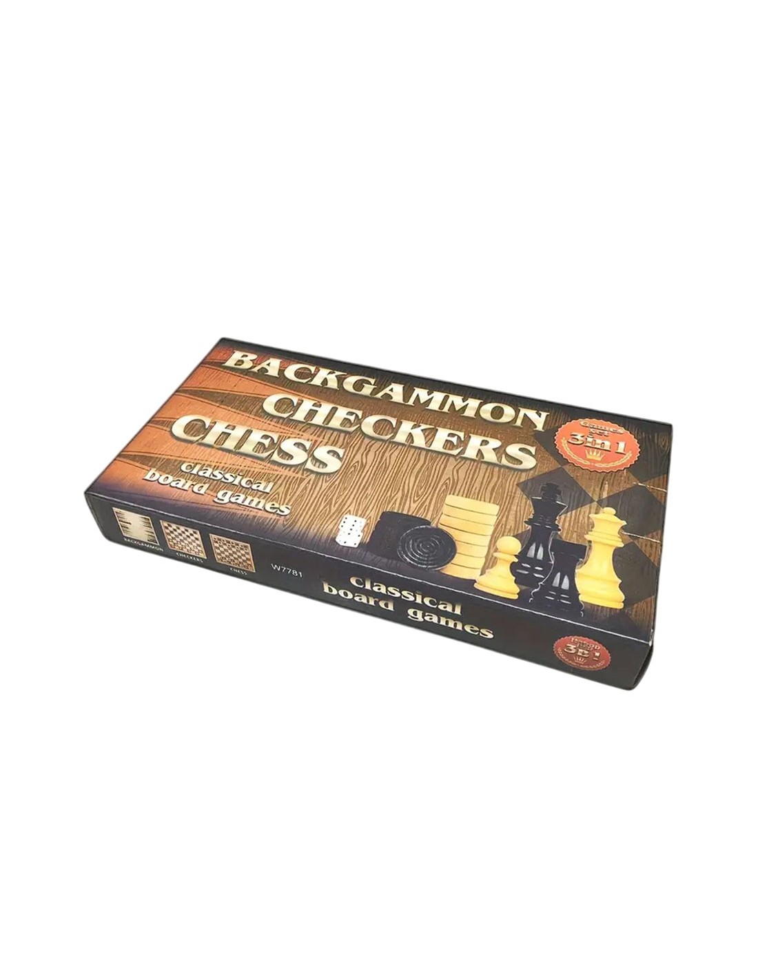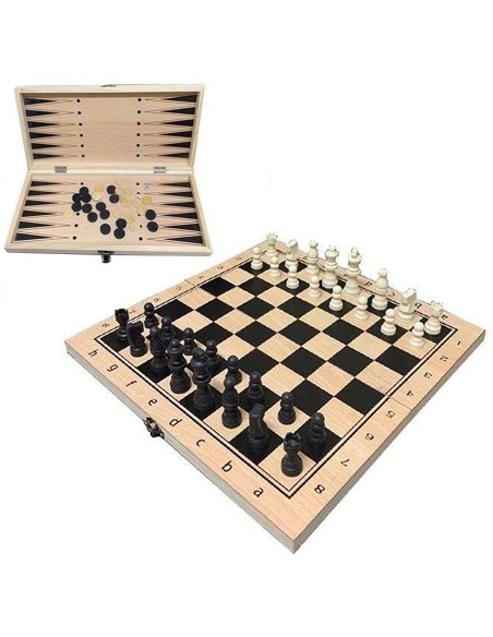 Mediniai šachmatai su medine lenta 24 cm + šaškės ir nardai W7781