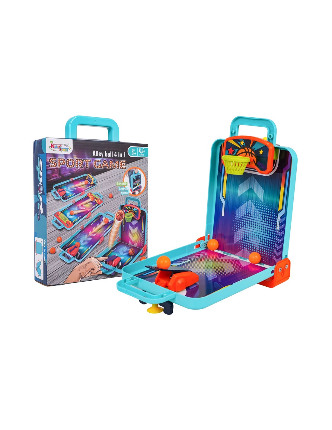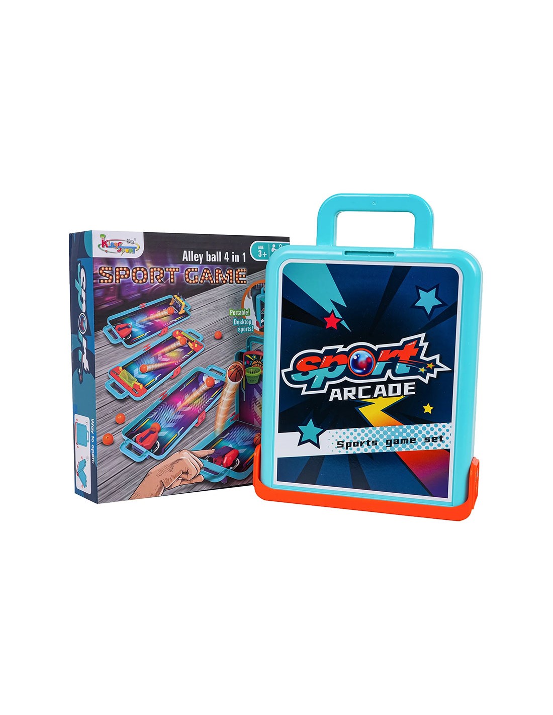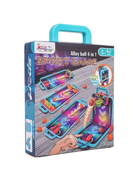 Pamirškite nuobodulį kelyje ar namuose! Šis unikalus žaidimų rinkinis sujungia populiariausias arkadines pramogas į vieną kompaktišką ir patogų lagaminą. Tai puikus pasirinkimas aktyviems vaikams nuo 3 metų, norintiems išbandyti savo taiklumą ir greitį skirtingose sporto šakose.