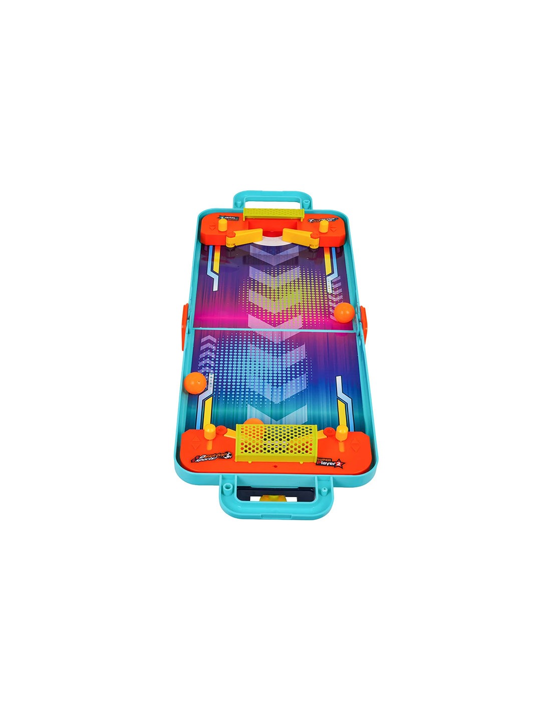 Rinkinio turinys: Lagaminas-lenta, 3 kamuoliukai, 4 diskai, boulingo rinkinys, krepšinio lenta, fliperio vartai, paleidimo įrenginys ir lipdukai.
