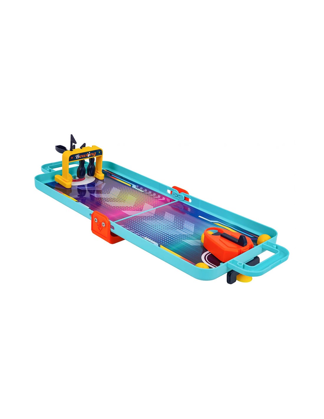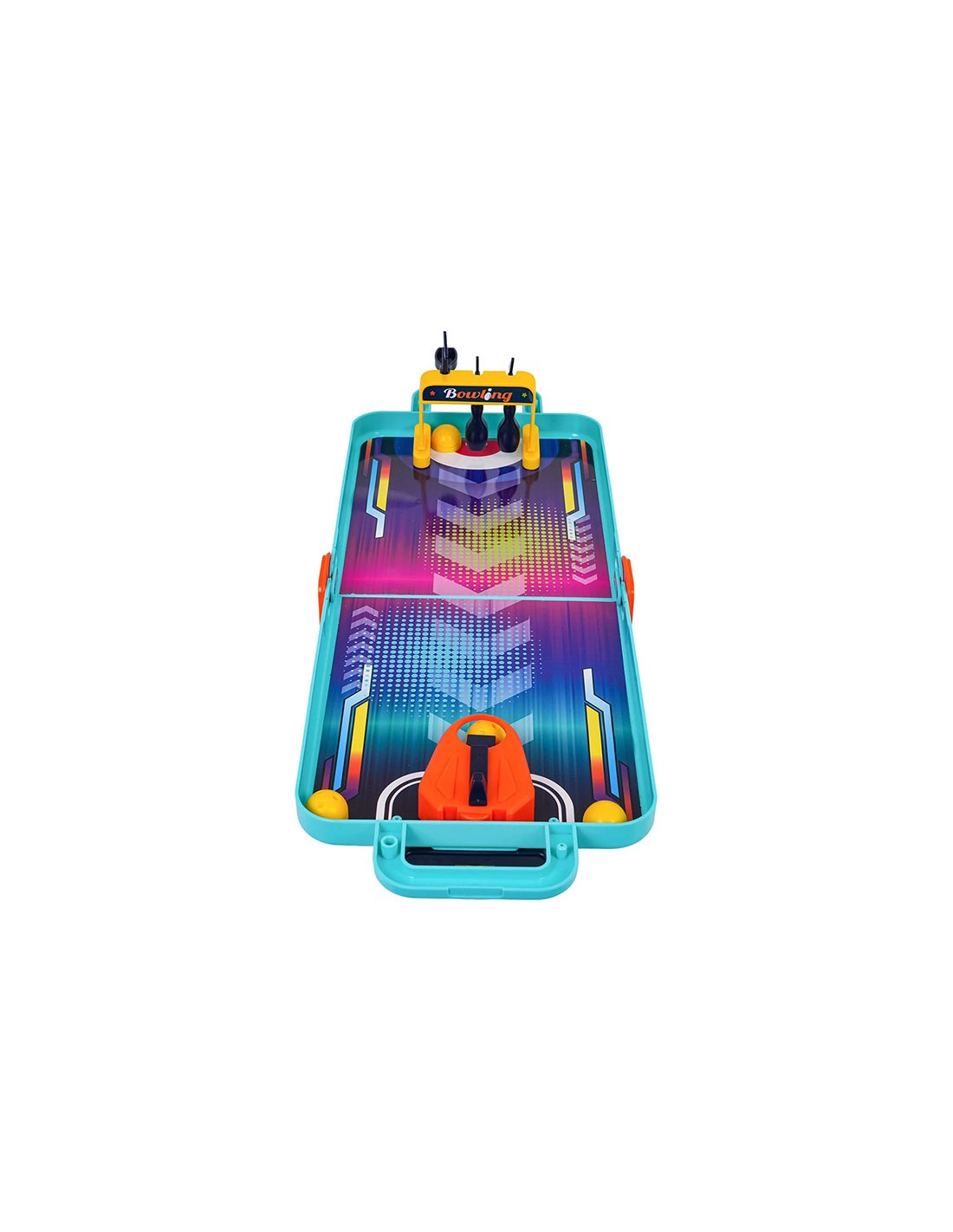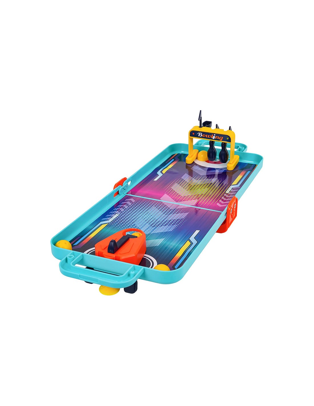 „4 viename“ žaidimų rinkinys lagamine: boulingas, krepšinis, ritulys ir fliperis. Lavina koordinaciją ir motoriką. Ideali pramoga kelionėms vaikams nuo 3 metų!