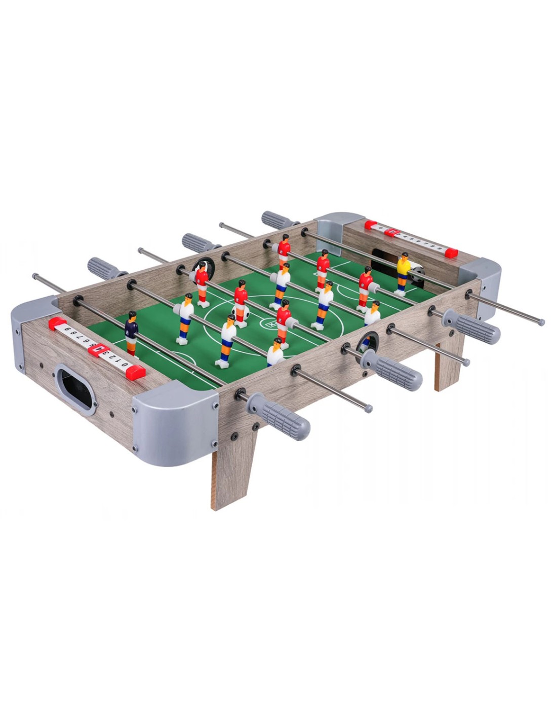 Kompaktiškas pilkas stalo futbolas vaikams nuo 3 m. Stabilus korpusas, rankinis taškų skaitiklis ir 2 kamuoliukai. Puikus azartiškas žaidimas namams ir kelionėms!