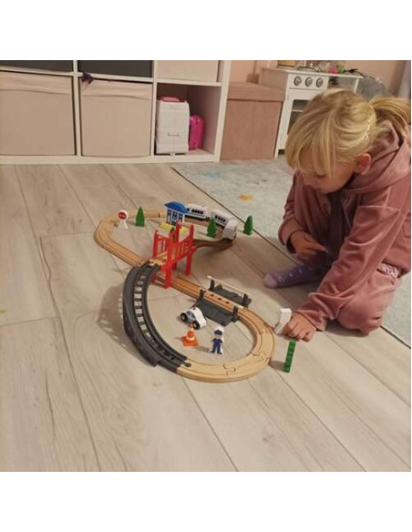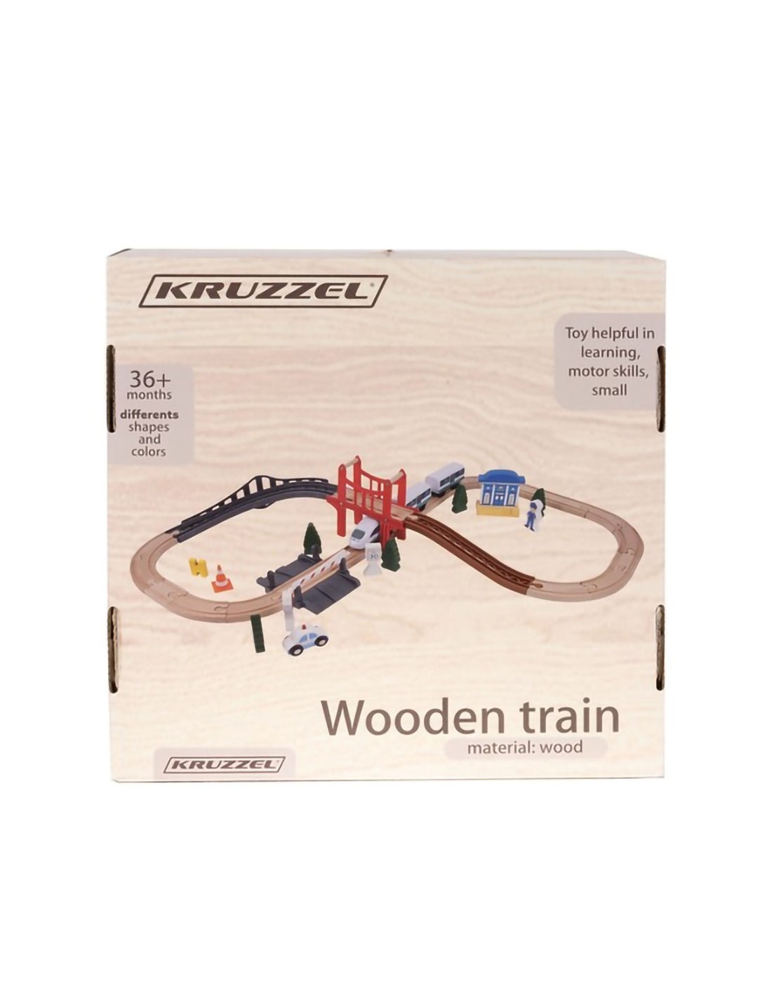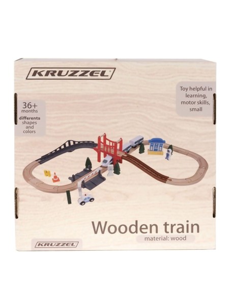 Medinis traukinukas – puiki idėja lavinti vaiko vaizduotę ir kūrybiškumą. Tinka žaisti namuose ir lauke. Rinkinį sudaro 37 elementai preciziškai pagaminta ir gražiai išbaigta, kurią galima derinti pagal savo sumanymus. Komplekte yra takelis, traukinys su vagonais, policininkas ir medžiai.