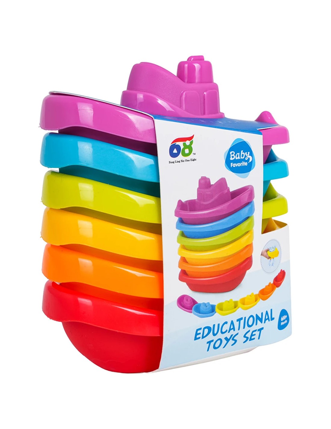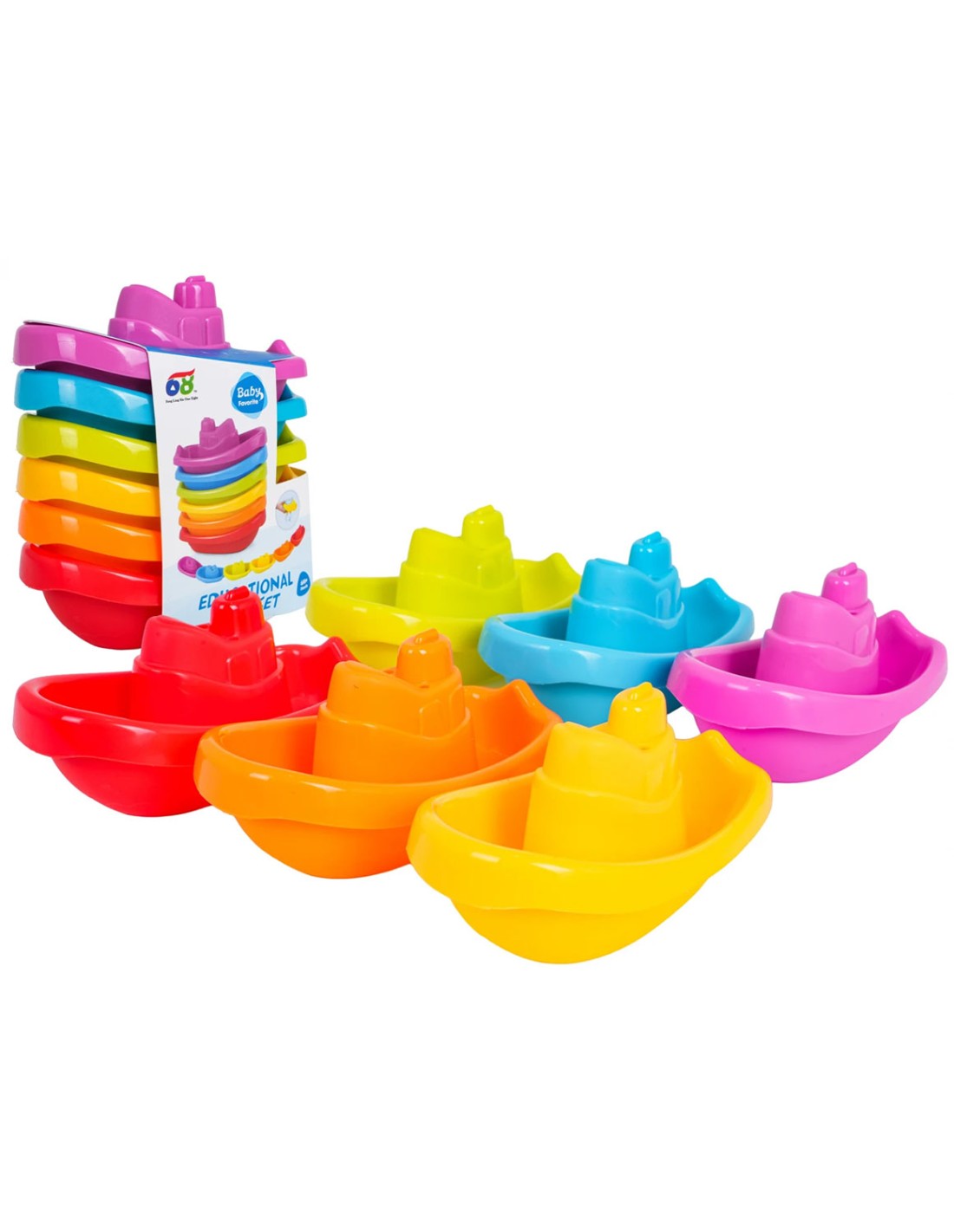 6 dalių maudymosi laivelių rinkinis mažiausiems tyrinėtojams. Saugus, patvarus ir spalvingas žaislas vandeniui bei smėliui. Lavina motoriką ir regą nuo 6 mėn.