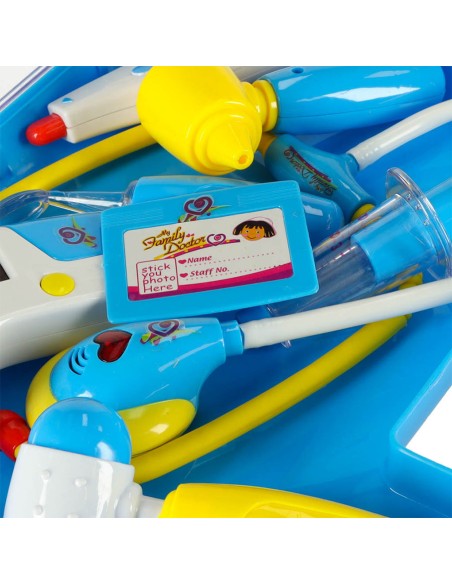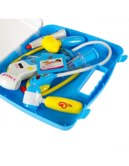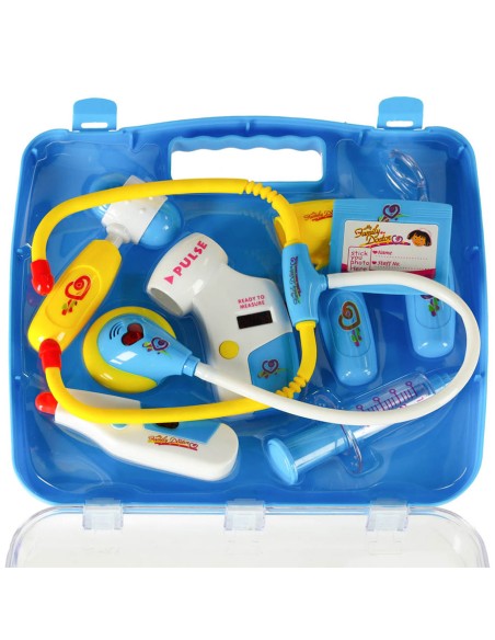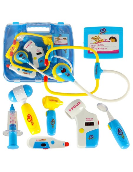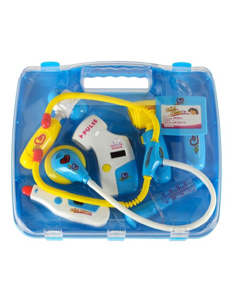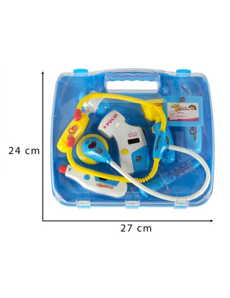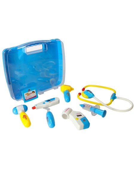 Mėlynas gydytojo lagamino rinkinys su šviesos ir garso funkcijomis